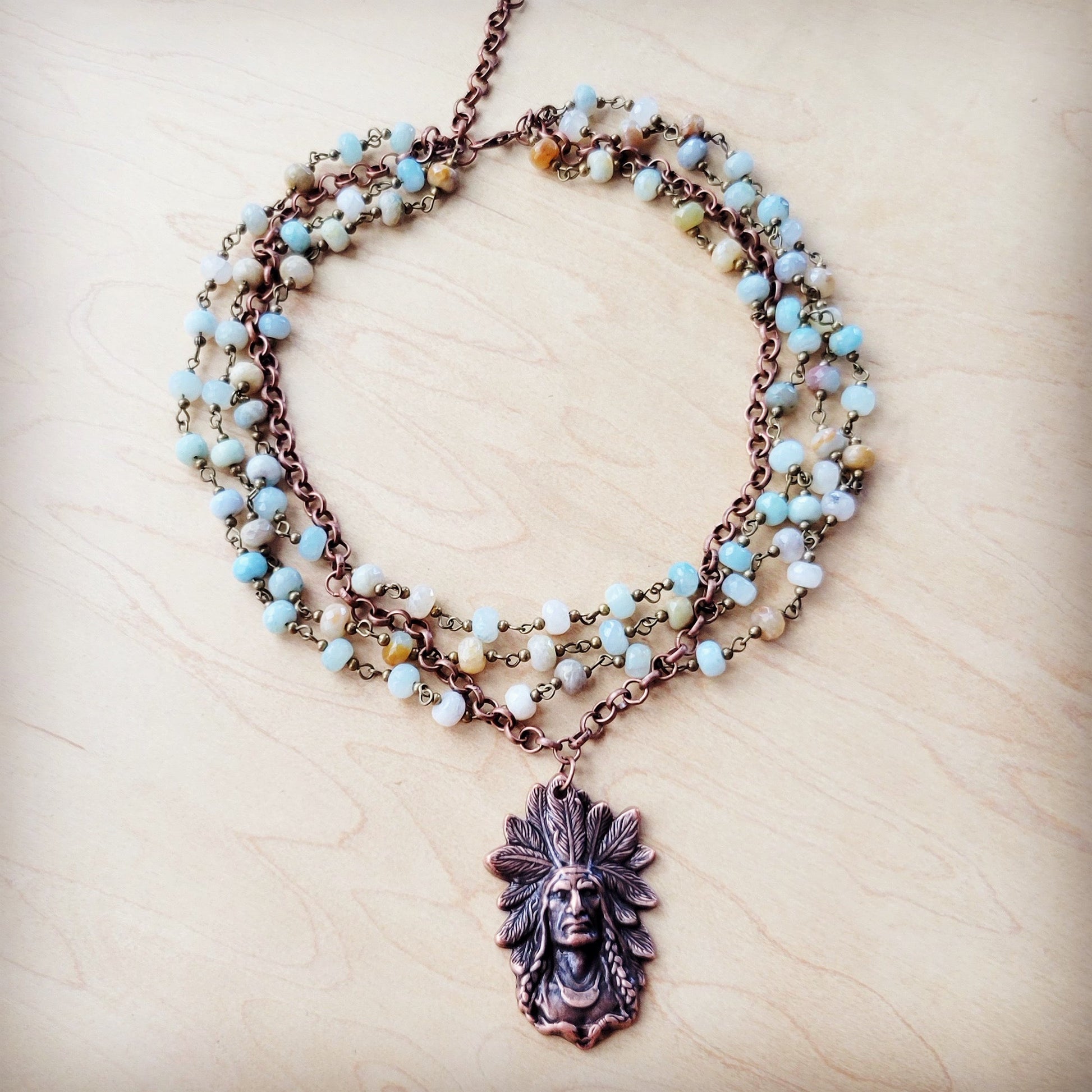 Amazonite Beaded Collar Necklace w/ Indian Pendant 260s