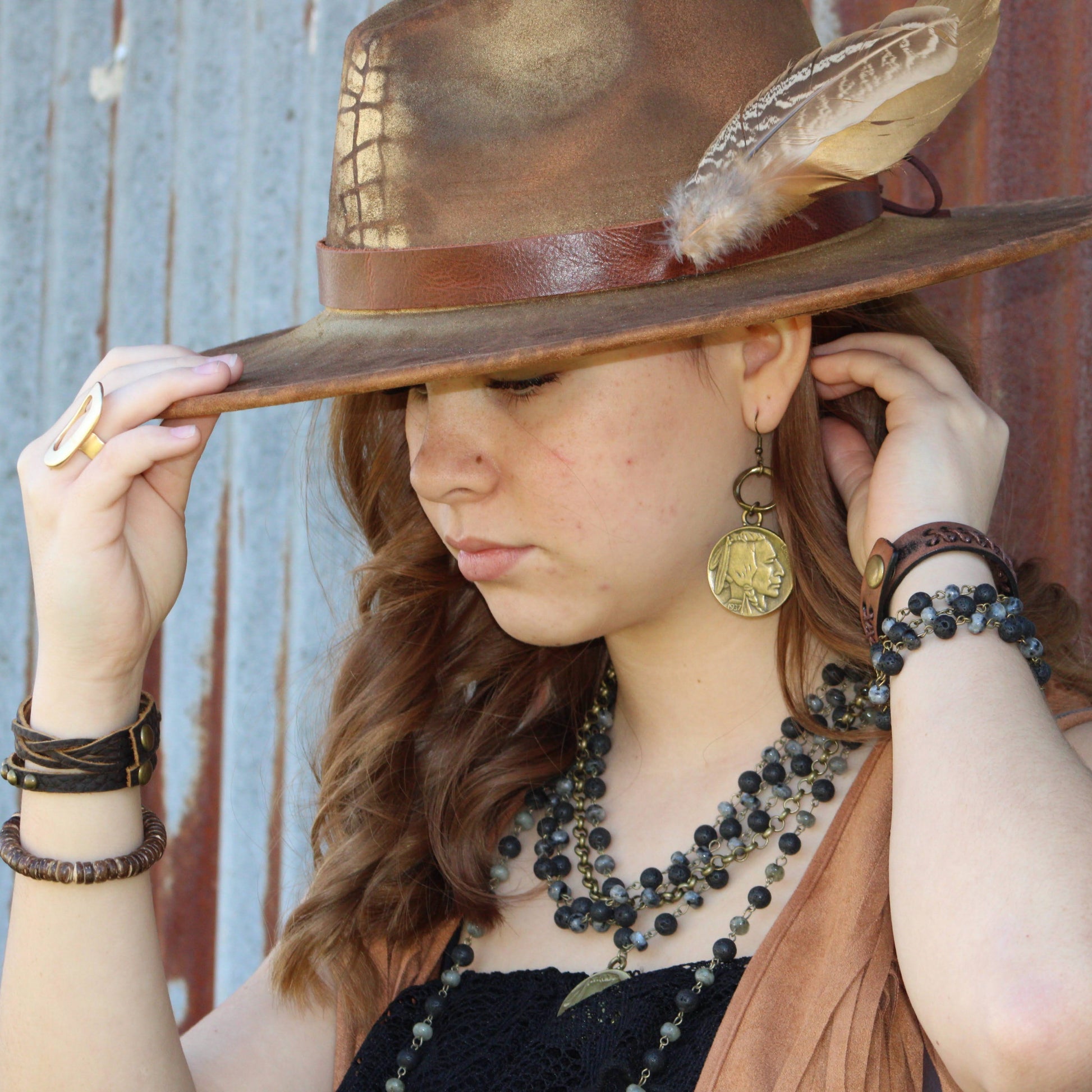 Bring the spirit of the wild west to your jewelry collection with our handmade Antique Gold Indian Buffalo Head Earrings! These western-inspired boho flair earrings showcase a beautifully detailed buffalo head, adding a touch of rustic charm to any outfit. Channel your inner adventurer and show off your unique style with this one-of-a-kind piece.