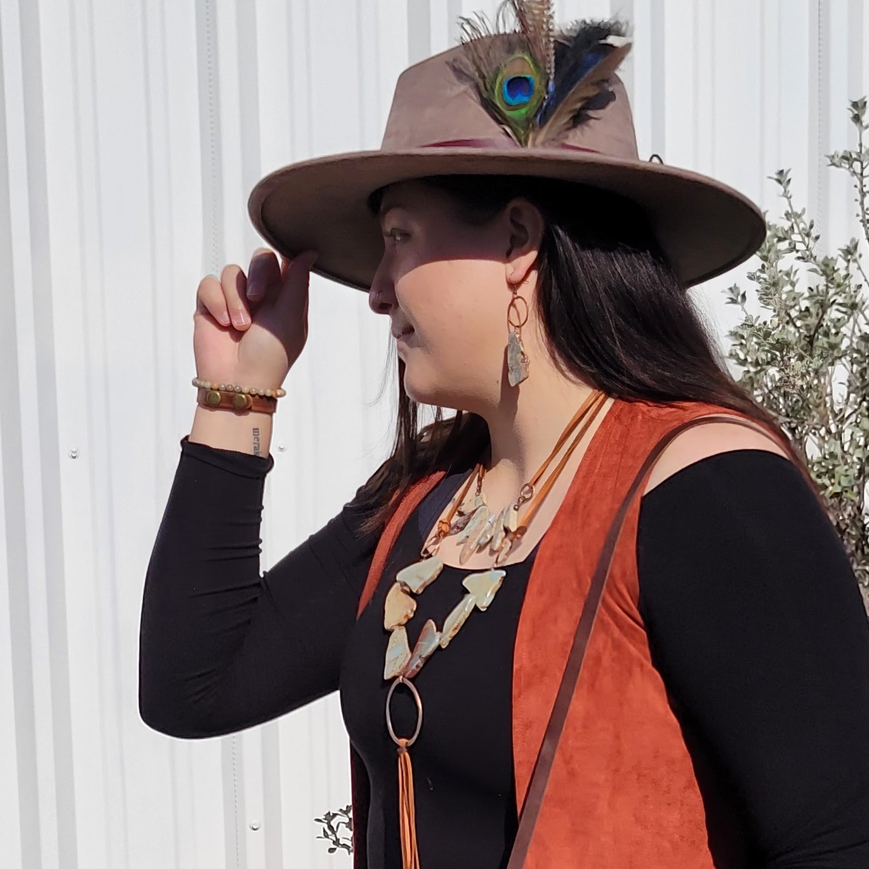Experience the natural beauty of Aqua Terra Chunky Earrings. Each pair is lovingly Handmade to add a touch of Boho Style to your look. Make a statement with this unique piece of jewelry that will surely turn heads. Elevate your style with these earthy and eclectic earrings! feature slabs of genuine Aqua Terra on a copper hoop.
