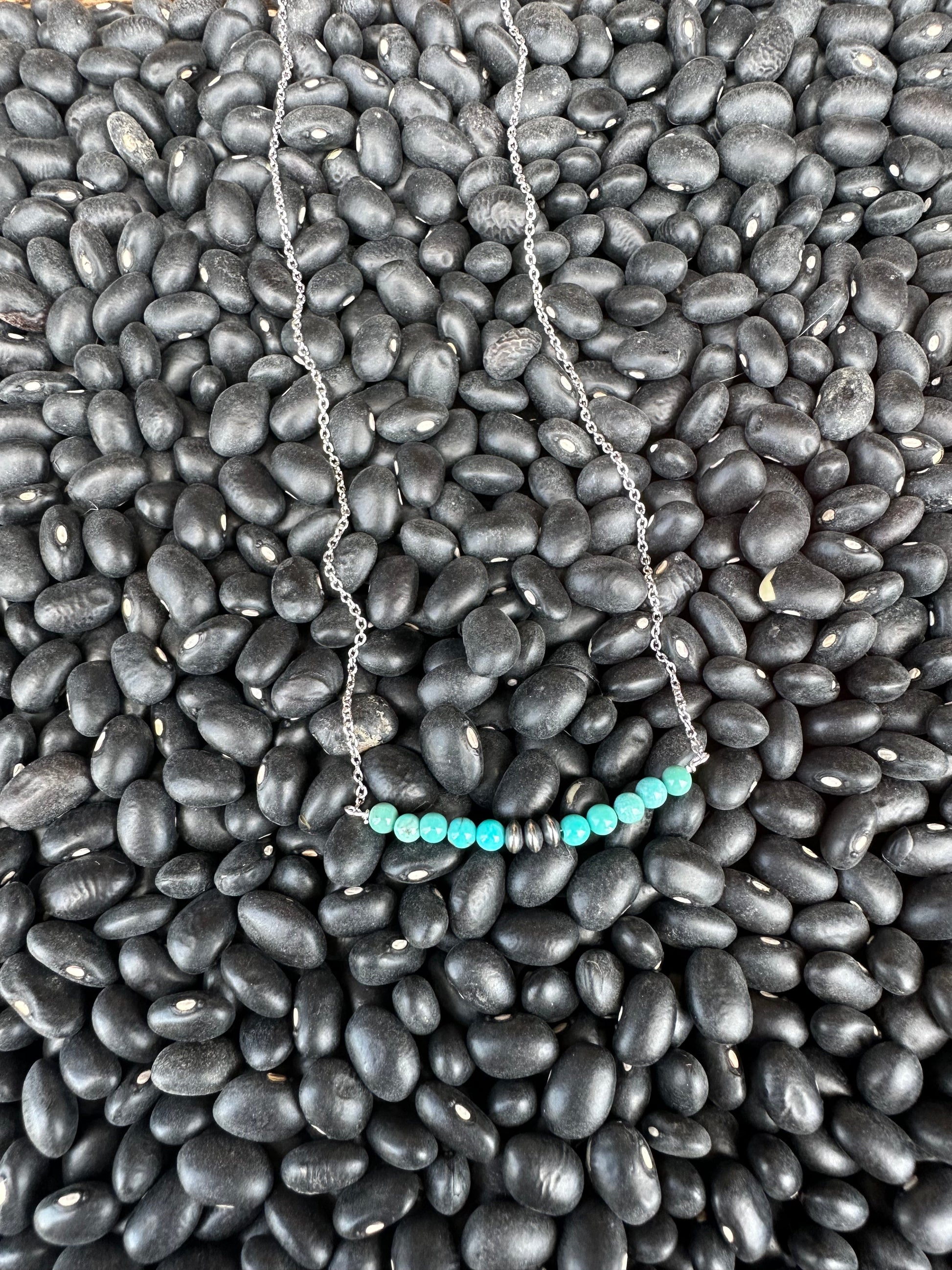 Authentic Turquoise Bead and Silver Pearl Bar Necklace
