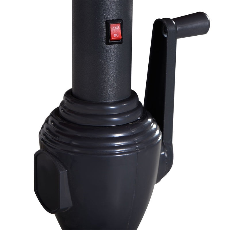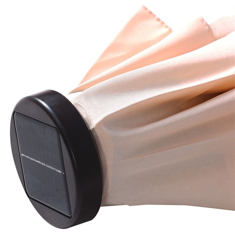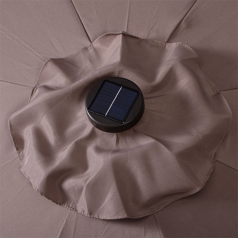 - Offset umbrella has 24 built-in LED lights powered by solar panels