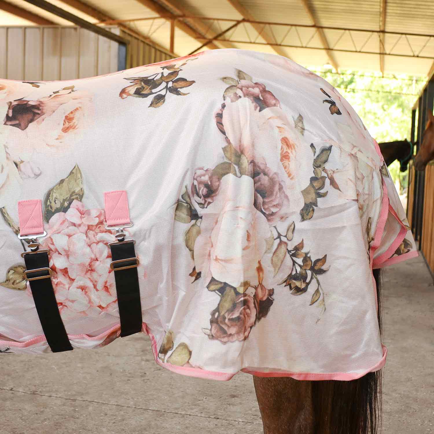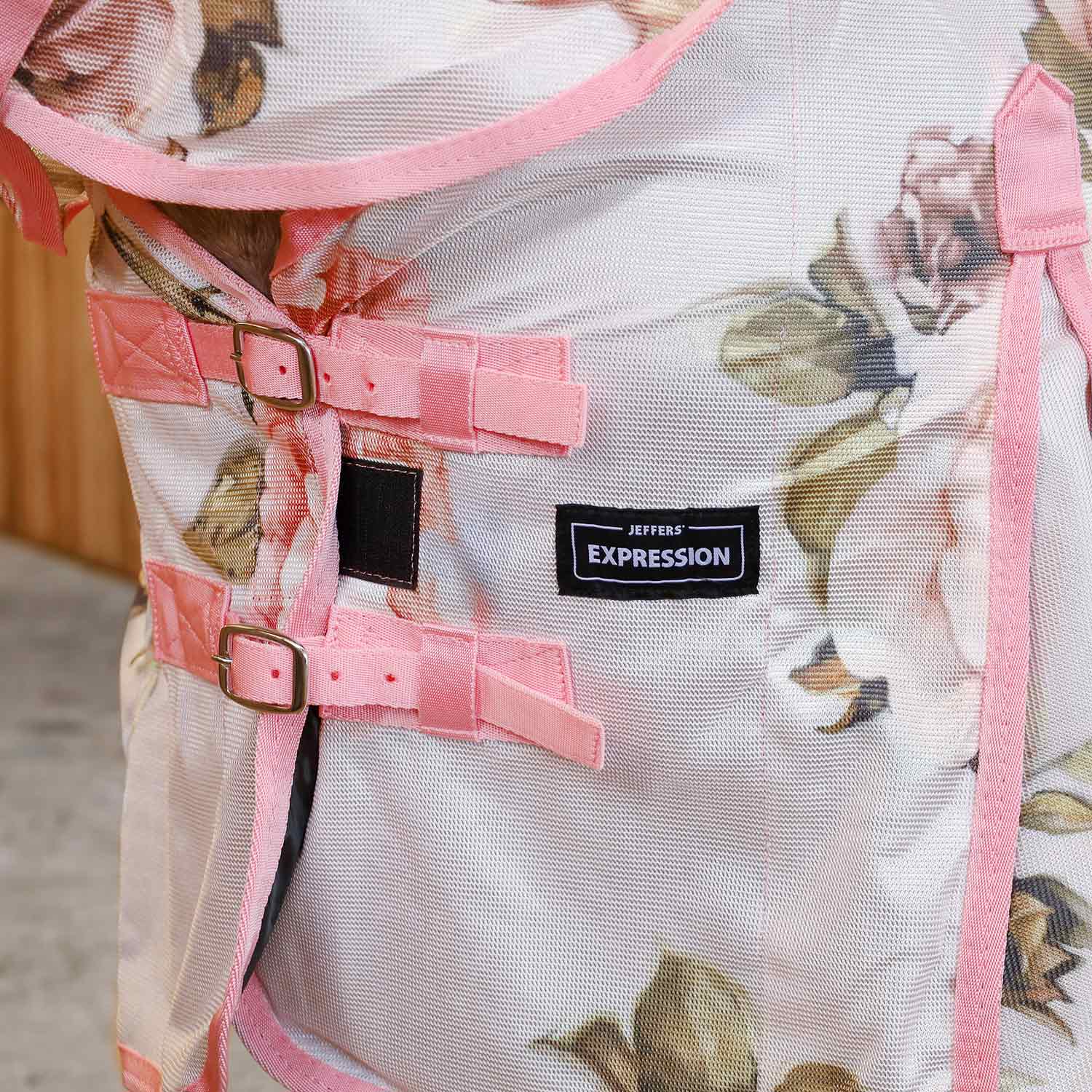 The Jeffers Expression Softmesh Combo Neck Fly Sheet is designed with exclusive Jeffers patterns to offer stylish and effective protection from flies and mosquitoes. Featuring an attached neck cover, this sheet shields your horse from poll to tail while allowing breathability through its lightweight mesh. Shoulder gussets provide freedom of movement, and adjustable straps ensure a secure, custom fit for all-day comfort.