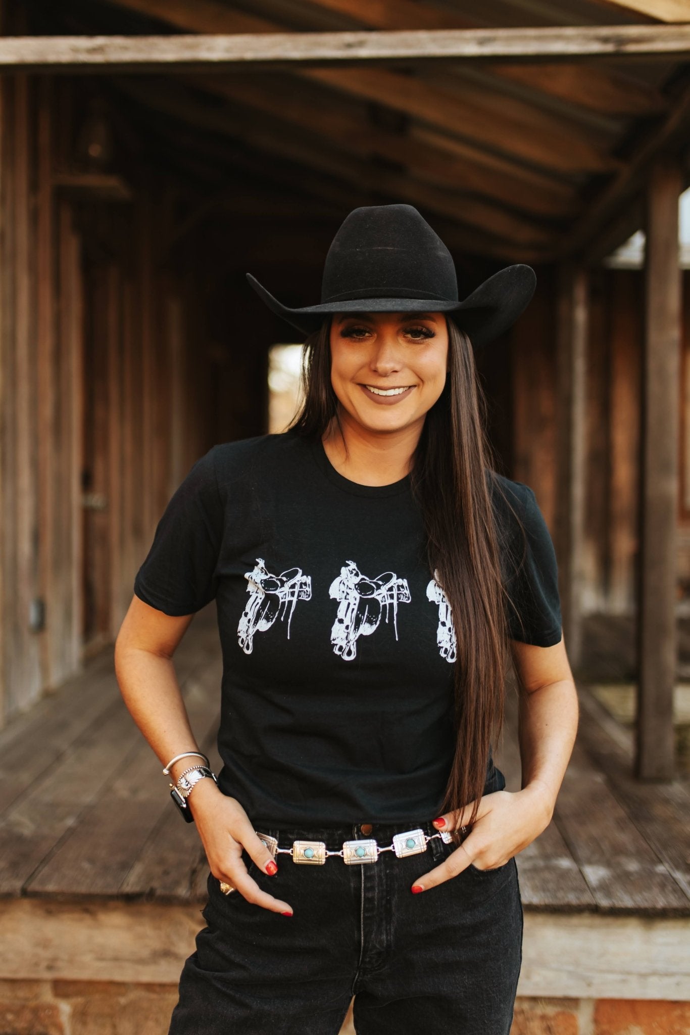 This ain't your grandma's belt. It's a Southwest statement piece for the modern cowgirl. Shimmering turquoise stones dance along a cool chain, all framed by sleek silvertone rectangle conchos. Whether you're rockin' jeans and boots or a sundress and sandals, this belt adds instant desert flair.