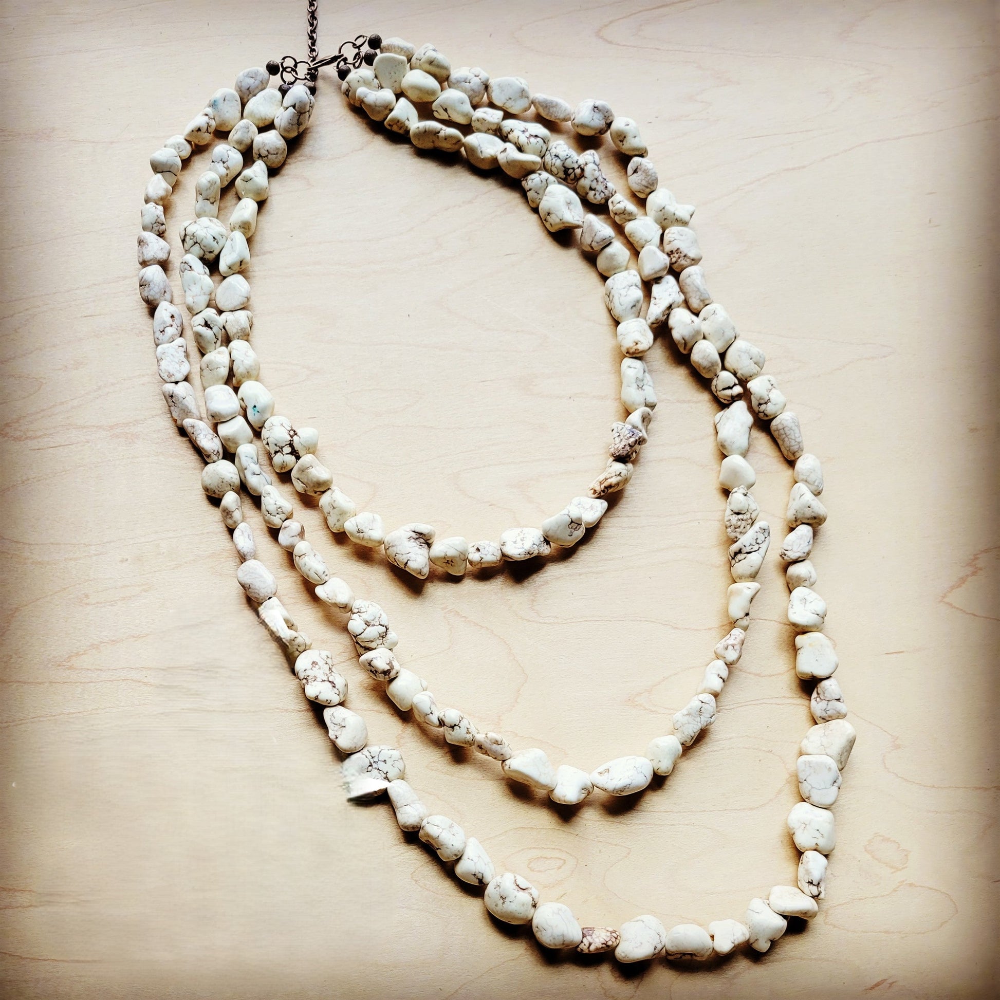 **White Turquoise Triple Strand Necklace 256a